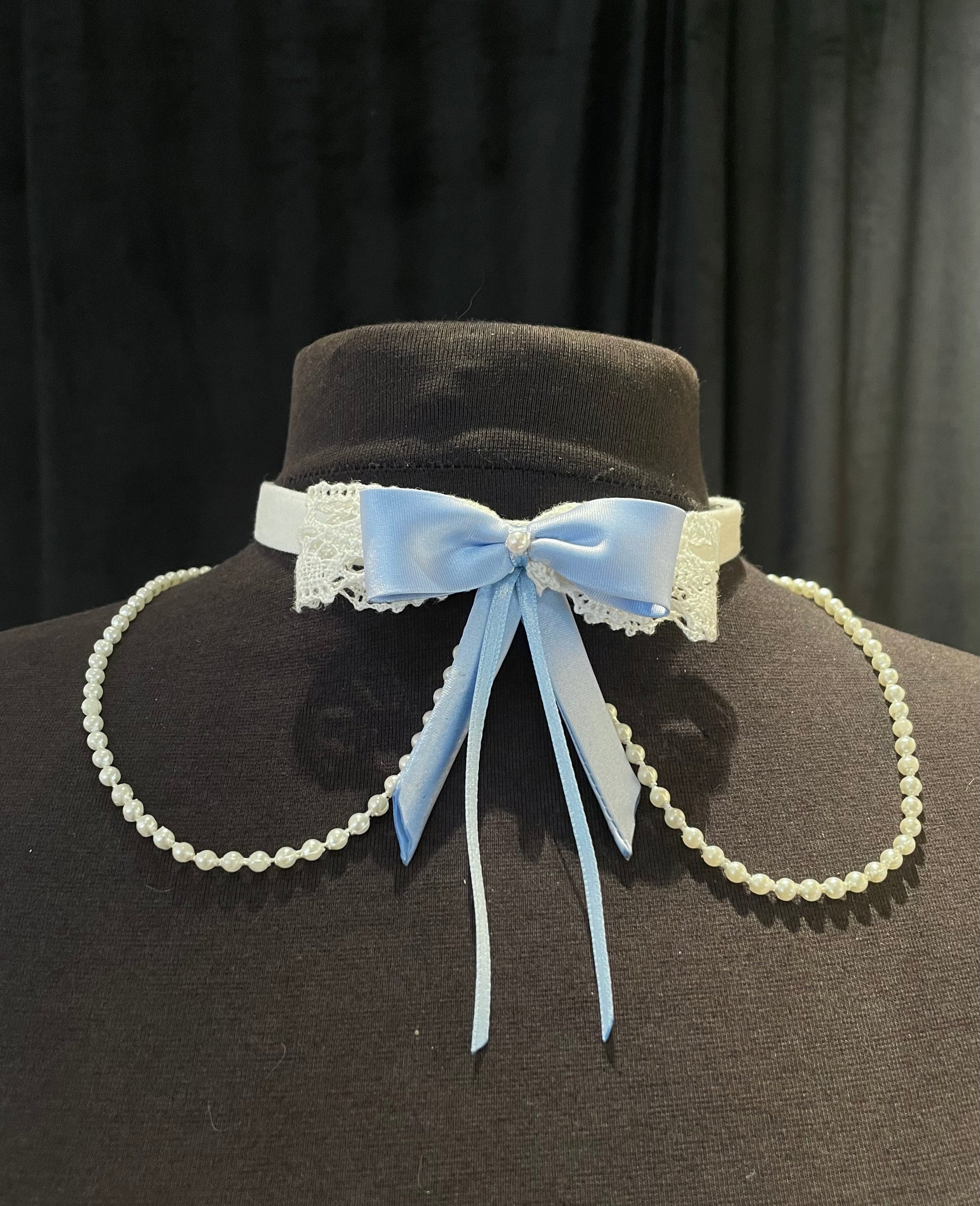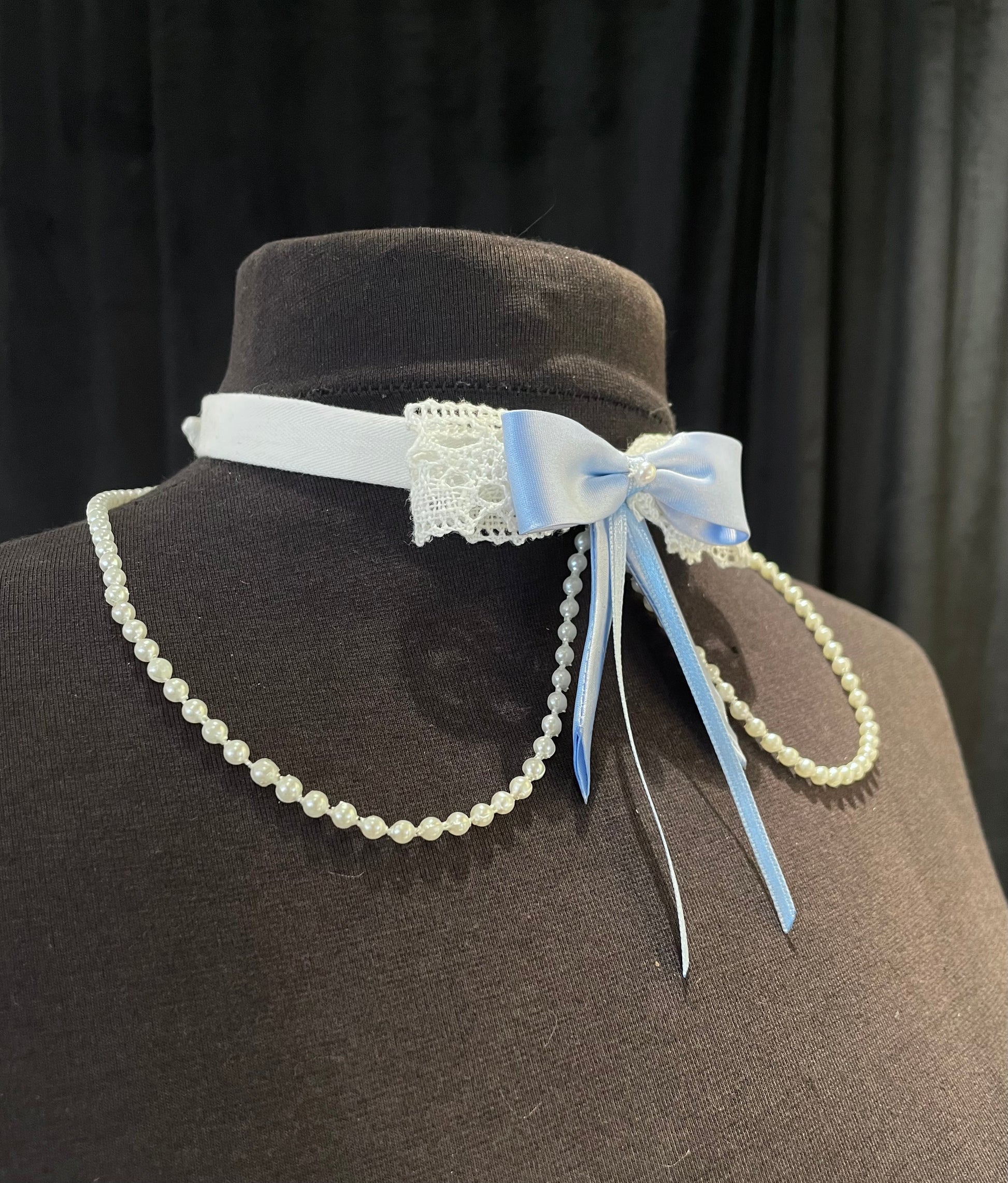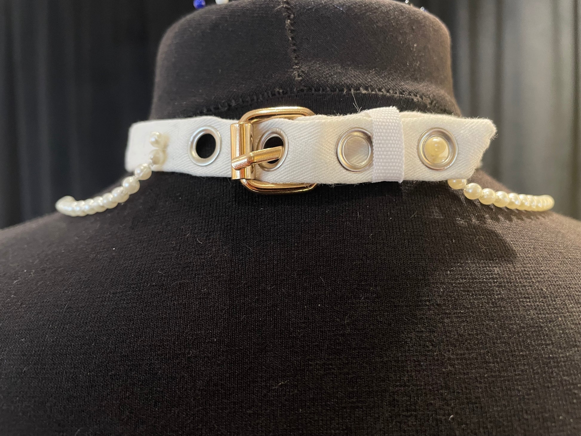 Tämän korsetin kaveriksi tehtiin kierrättämällä ylijääneistä materiaaleista kaulapanta, jonka voit ostaa korsetin kanssa yhdessä tai erikseen. Kaulapannan pituus on 42cm ja siinä on neljä eri kireys vaihtoehtoa.