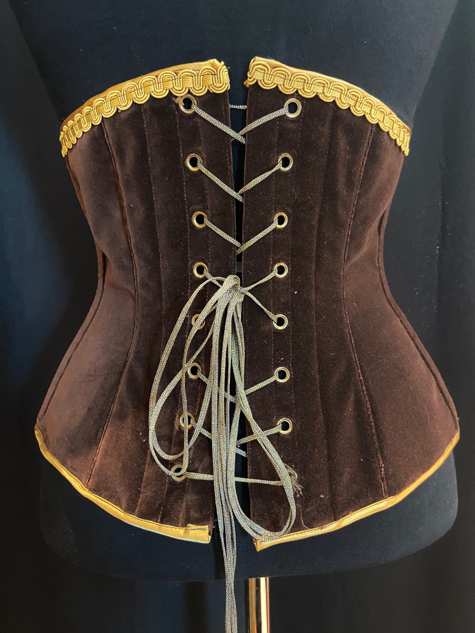 Tumman kullan sävyinen koristenauha. Kokonaan luutettu synteettisellä valaanluulla, soveltuu kohtalaiseen kiristykseen.