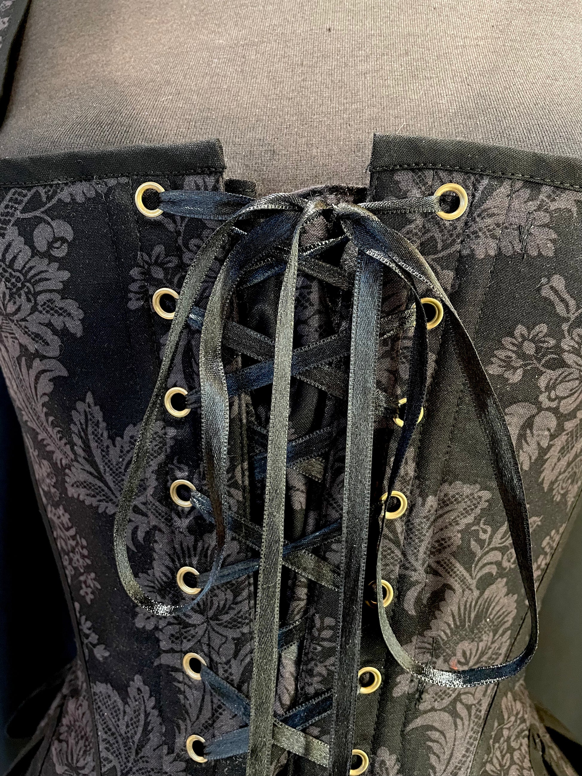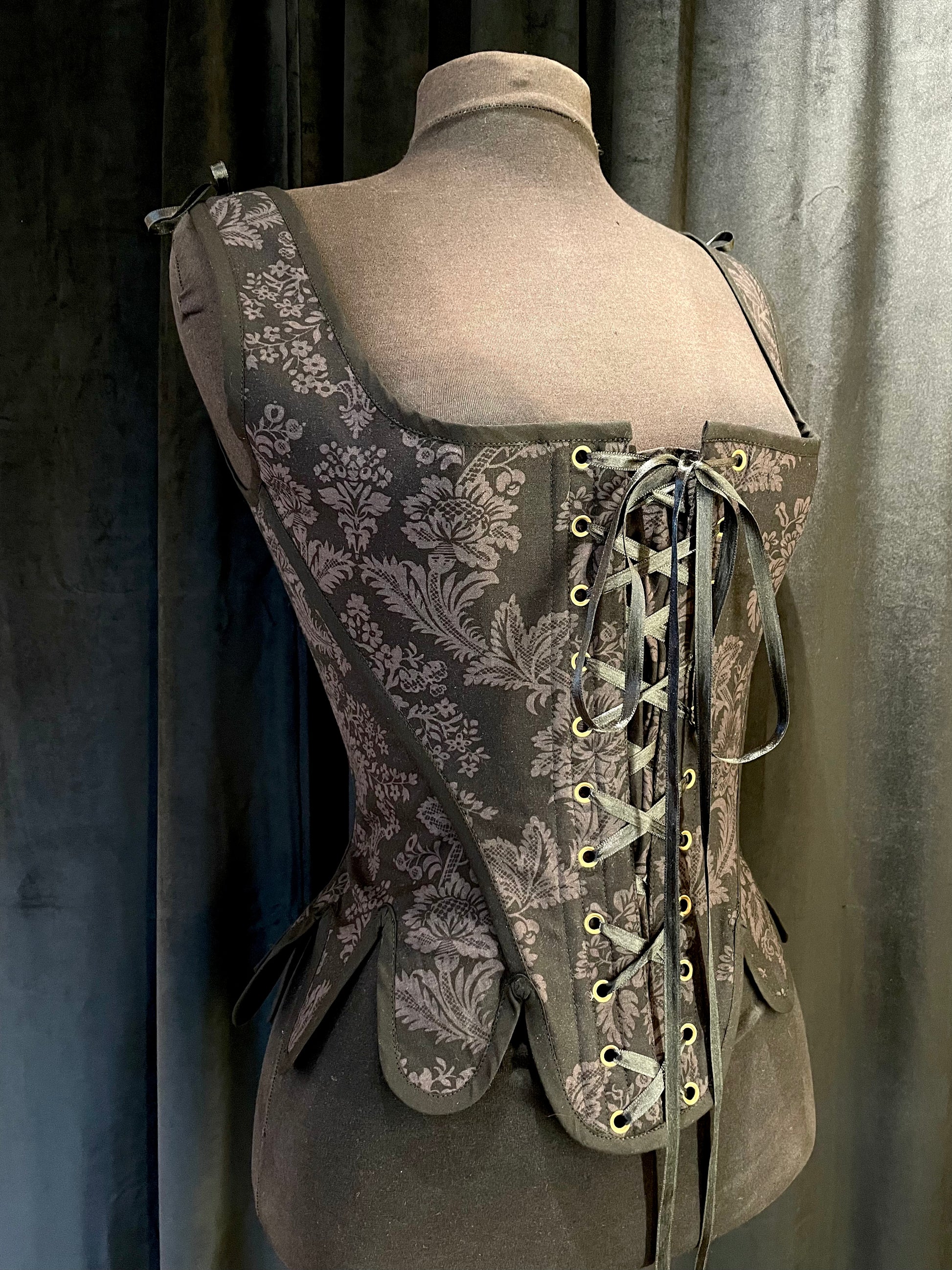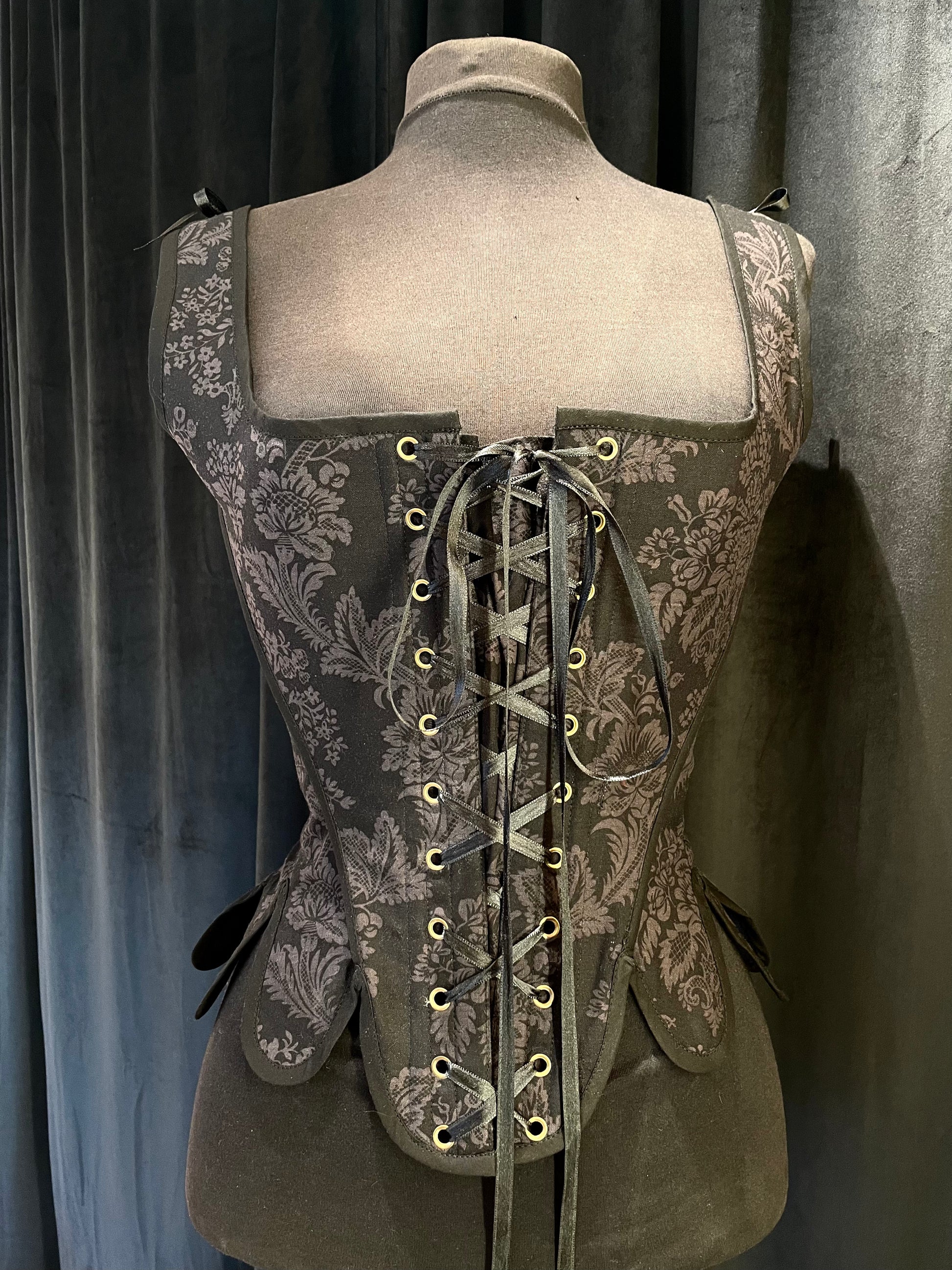 Rokokoo tyylinen stays, tämä vaate on korsetin edeltäjien inspiroima. Tukeva mutta kevytja aivan ihanan näköinen Elisabeth sopii loistavasti historiallisiin asukokonaisuuksiin, tai kesäpäivänä liehuvan paidan tai mekon päälle. Esimerkiksi kevyt puuvillainen tai pellavainen vaate tämän staysin alle on usein käytetty ja hyvin toimiva asukokonaisuus.
