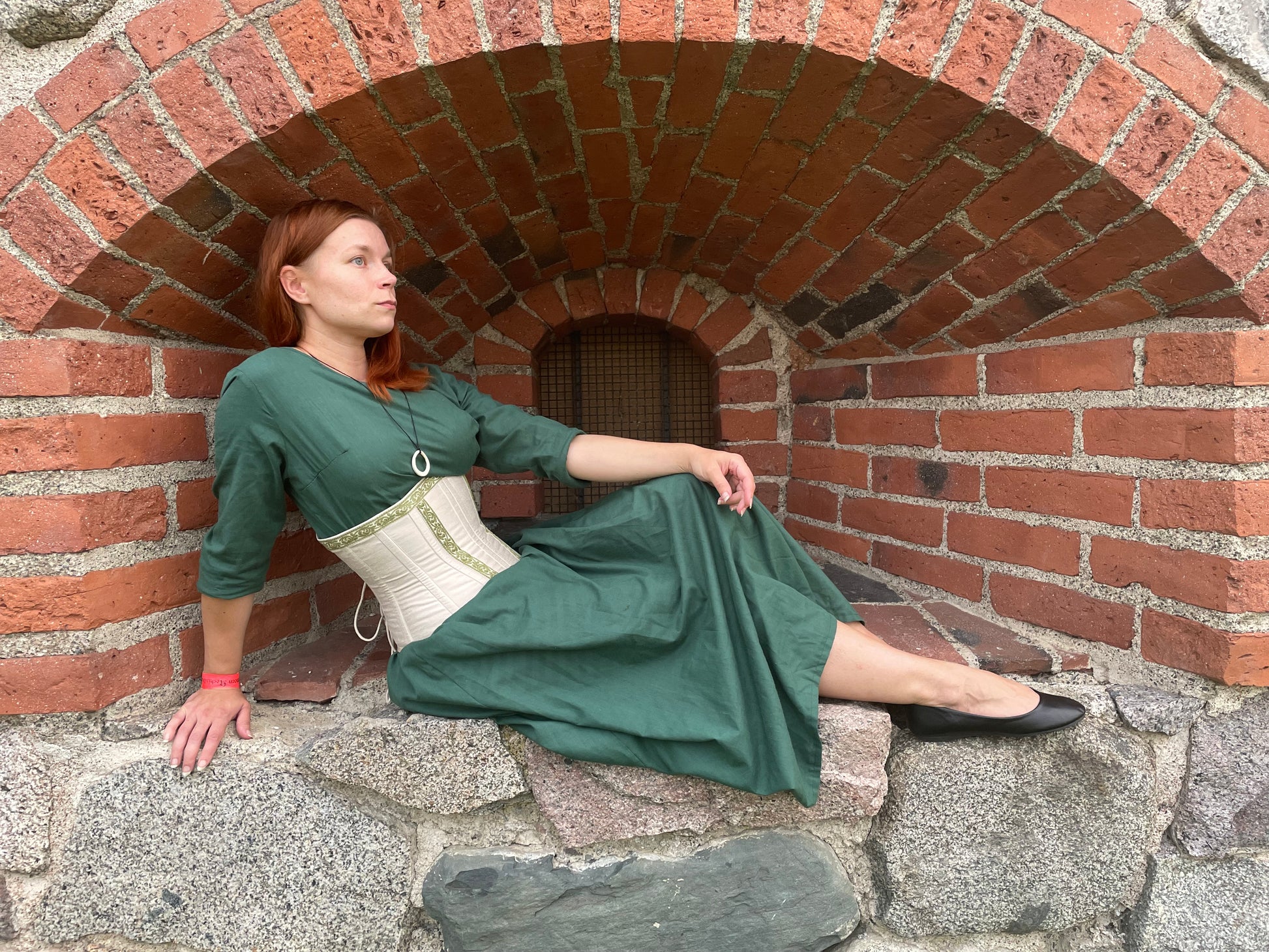 Yksinkertainen mutta näyttävä vaalea Rakel-vyötärökorsetti. Tukeva ja mukava, luutettu synteettisellä valaanluulla. Luonnosta inspiraation saaneet yksityiskohdat tekevät korsetista kauniin ja saa sen sopimaan moneen eri asuun!