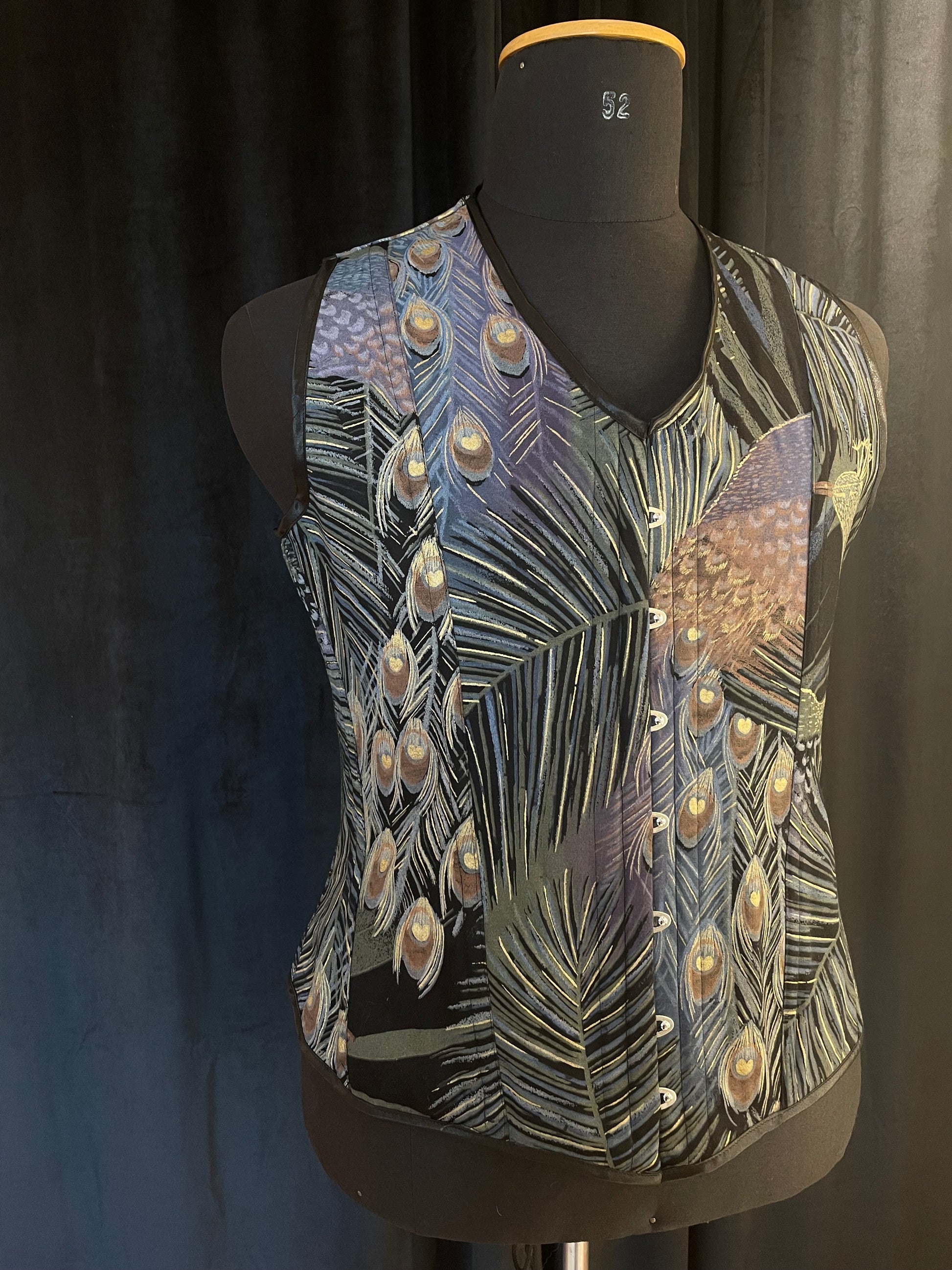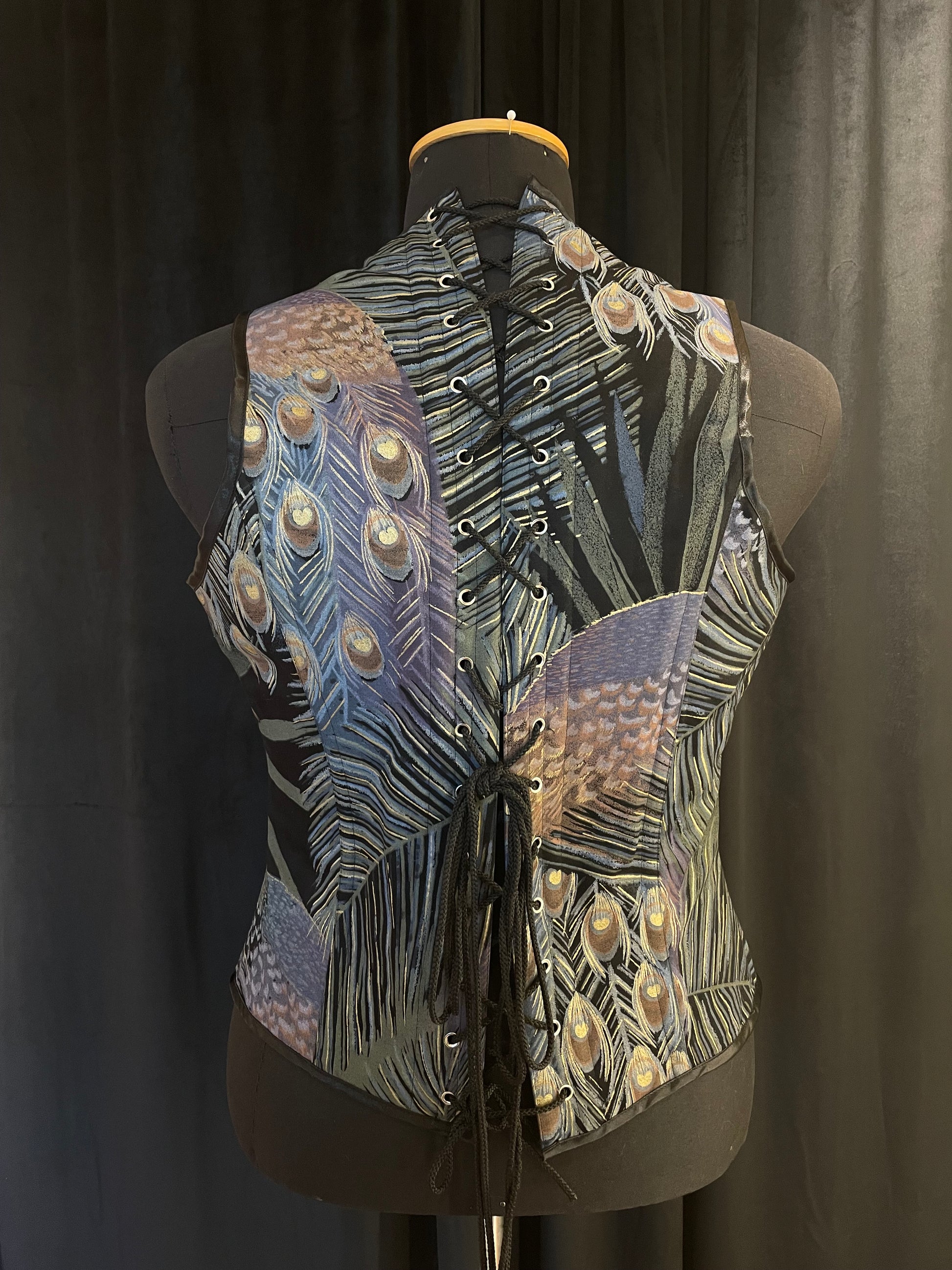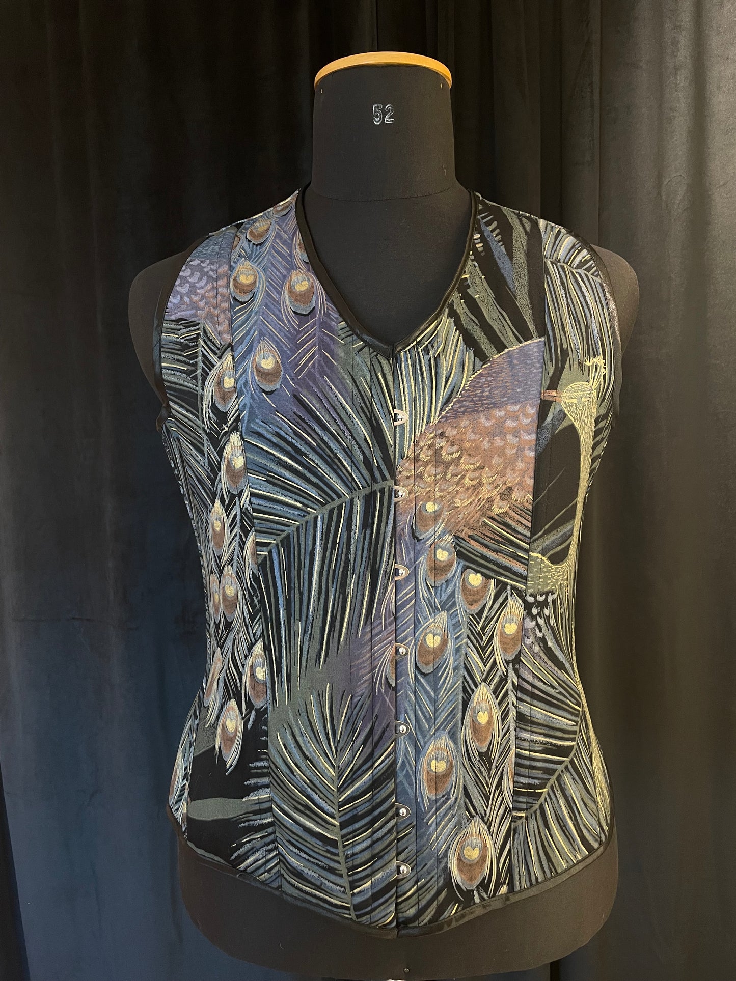 Hermanni on liivimallinen korsetti joka sopii loistavasti esimerkiksi puvun kaveriksi! Liivikorsetti on hauska niin arjessa kuin juhlassa ja kääntää takuulla katseet. Se antaa ryhtiä ja tukee, samalla tavalla kuin muut korsetit, mutta luut ylettyvät olkapäille asti edessä ja takana. Muoto on melko suora, joten se ei kiristä kehoon muotoa kuten monet perinteisesti naisten korsetit, ellet halua teetättää kurvikkaamman mallin. Hermanni on kaavoitettu mukavaksi miehen vartalolle, mutta kaikki tuotteemme ovat unisex. Malli on pitkä, suorahko, ja vyötärö on alempana kuin kurvikkaamissa korseteissamme.