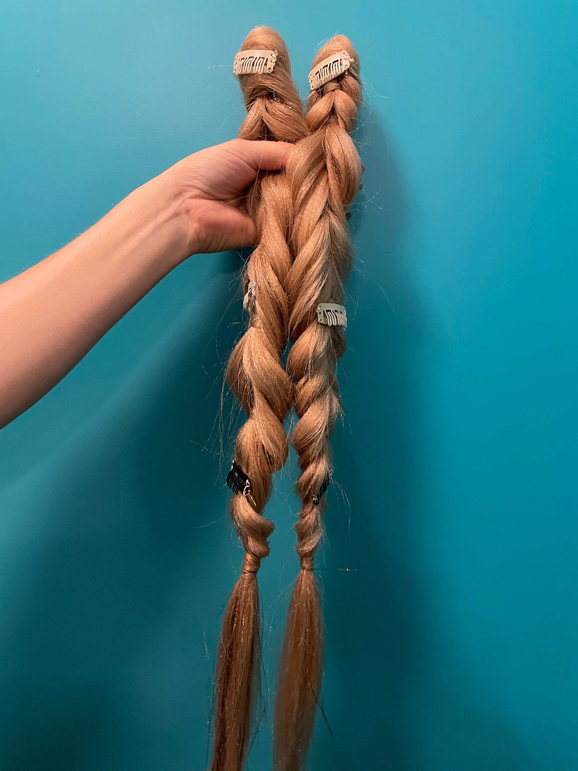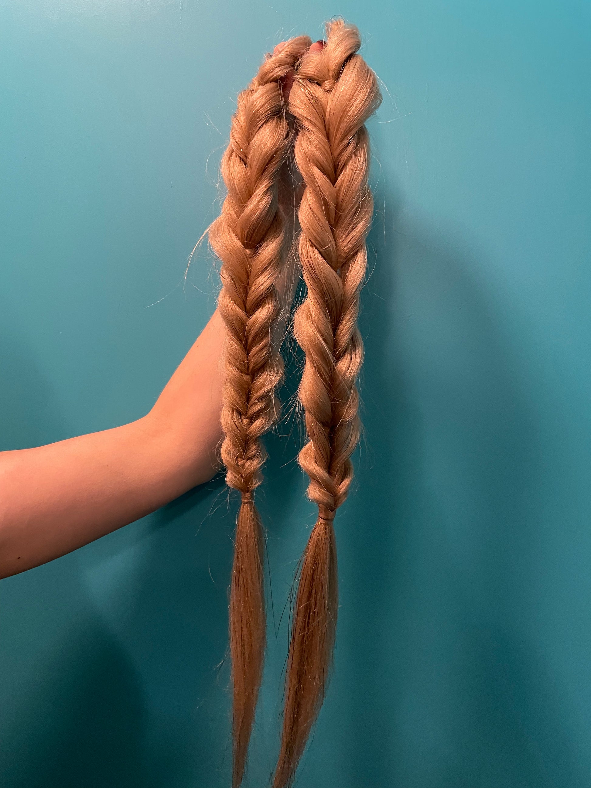 Väri: Tumma blondi/karamelli. Pituus noin 65cm