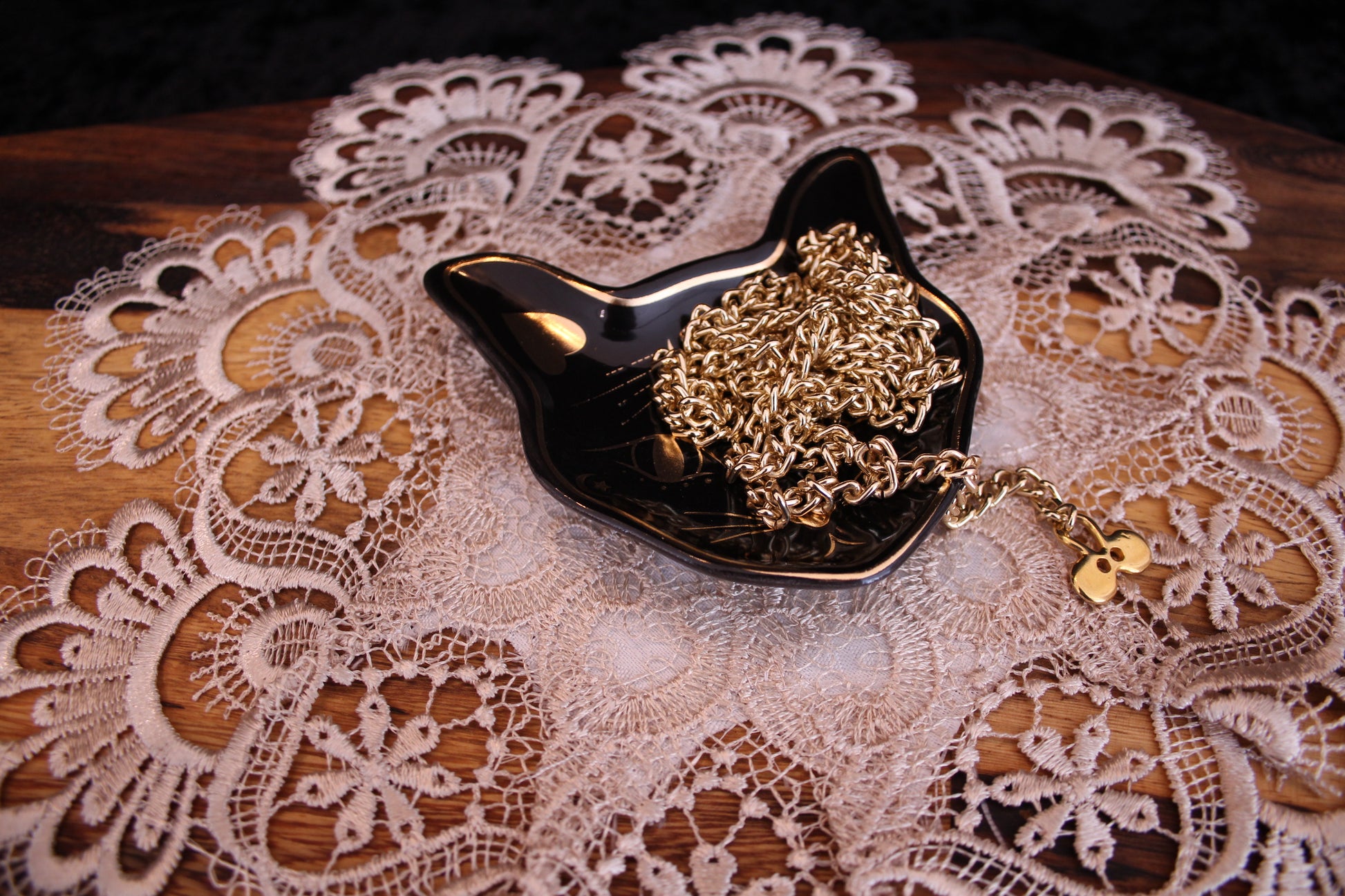 Mjau! Söpö kuukissuli keraaminen kulho koruille, pienille esineille tai vaikka teepussille.