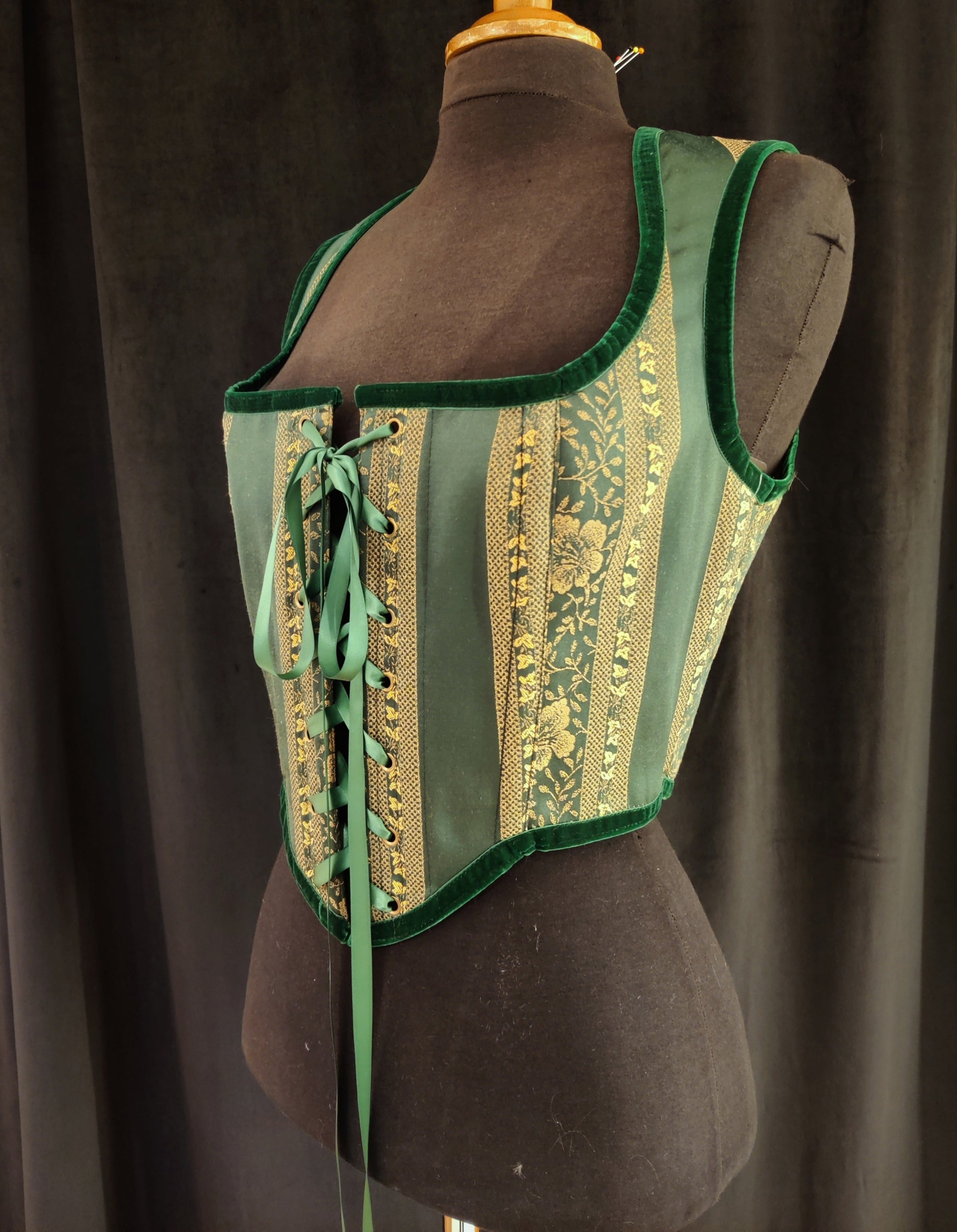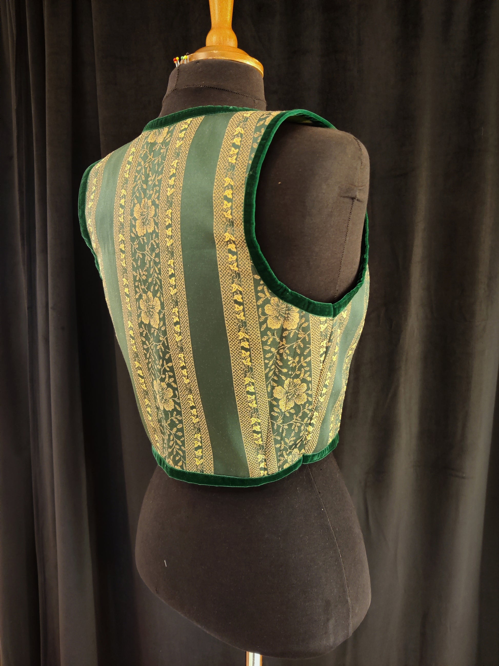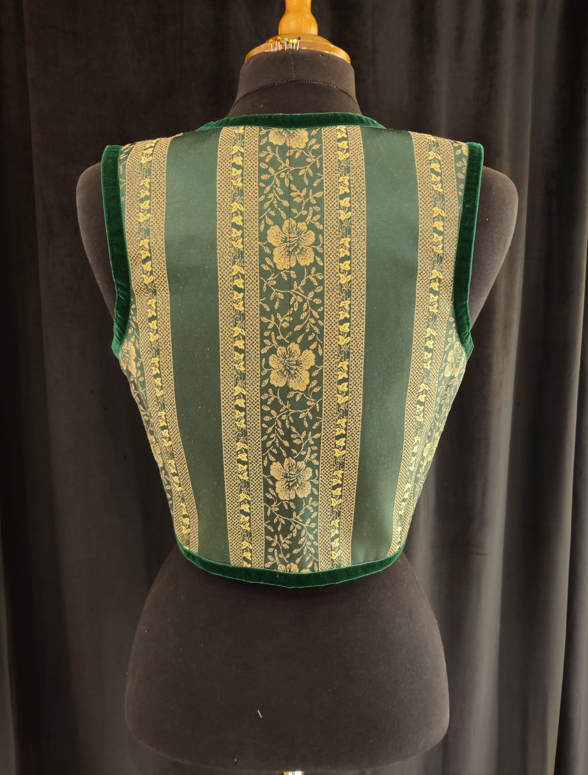 Ihana vihreä korsettiliivi! Oli tulossa sitten Keskiaika festivaalit, Octoberfest, tai sitten ruokakauppa reissu niin tämä kaunotar sopii kuin nenä päähän moneen asuun. Puuvillasamettiset reunukset tuovat yleellistä tunnelmaa, mutta tämä sopii silti myös arkikäyttöön.