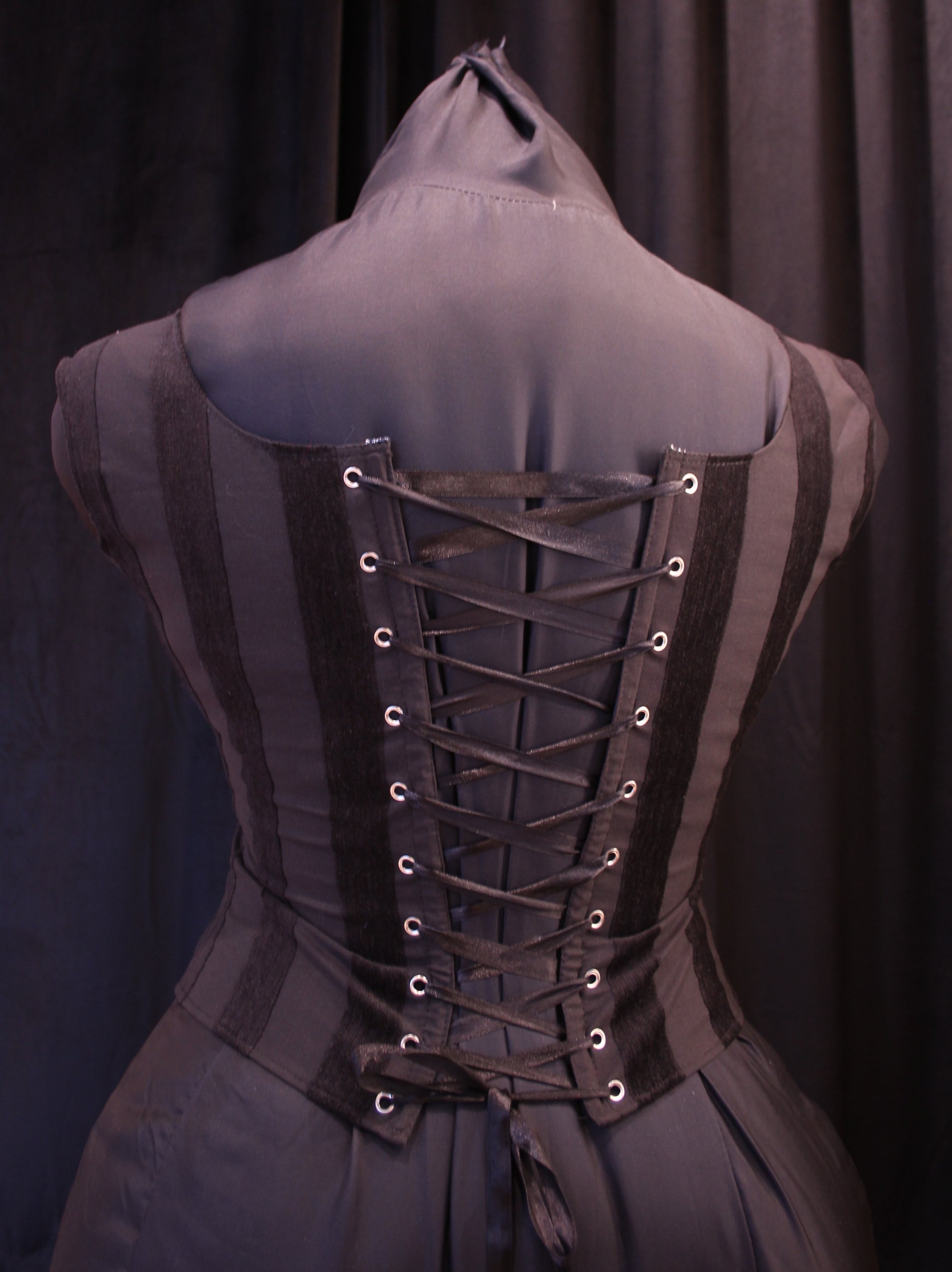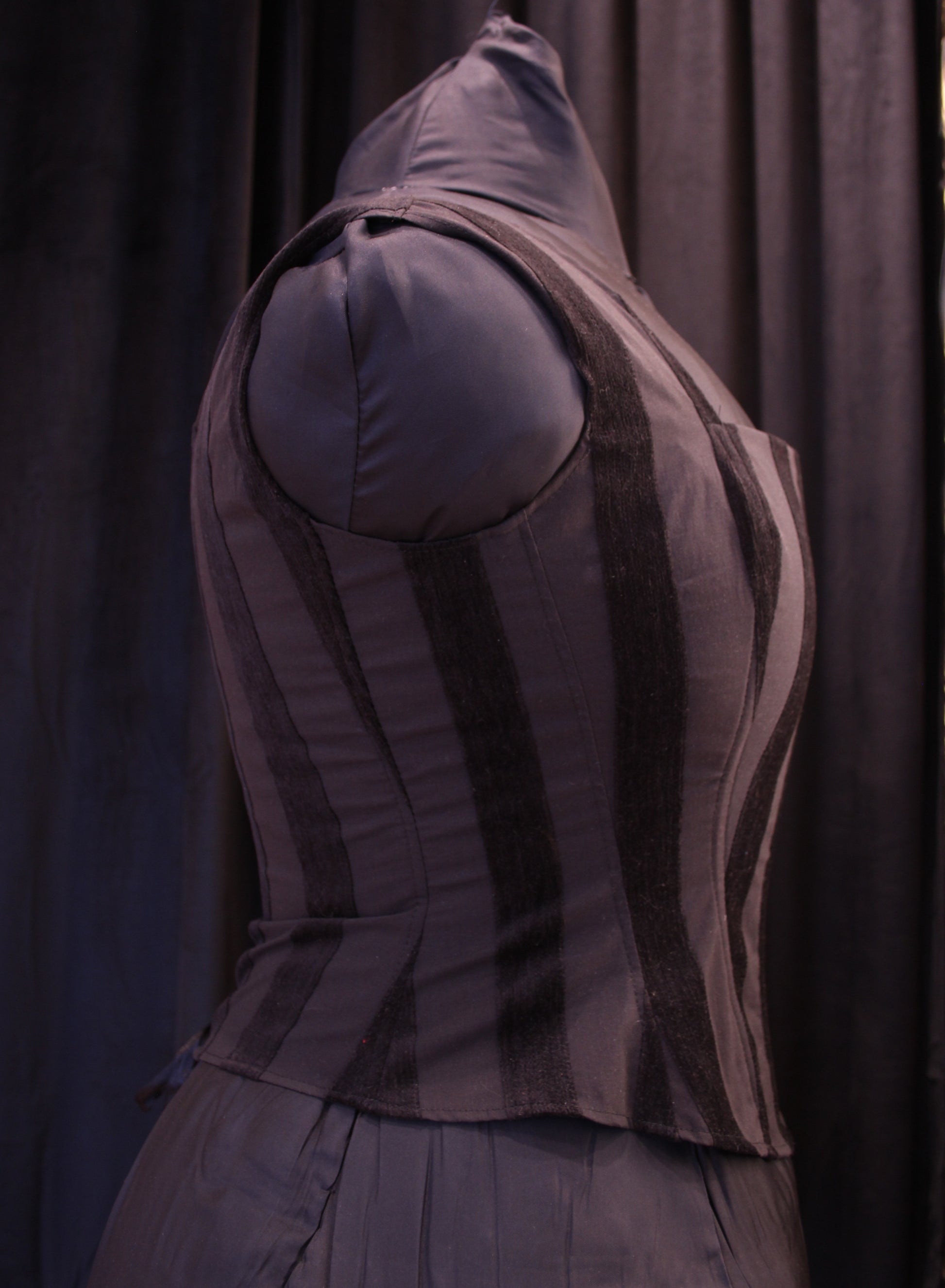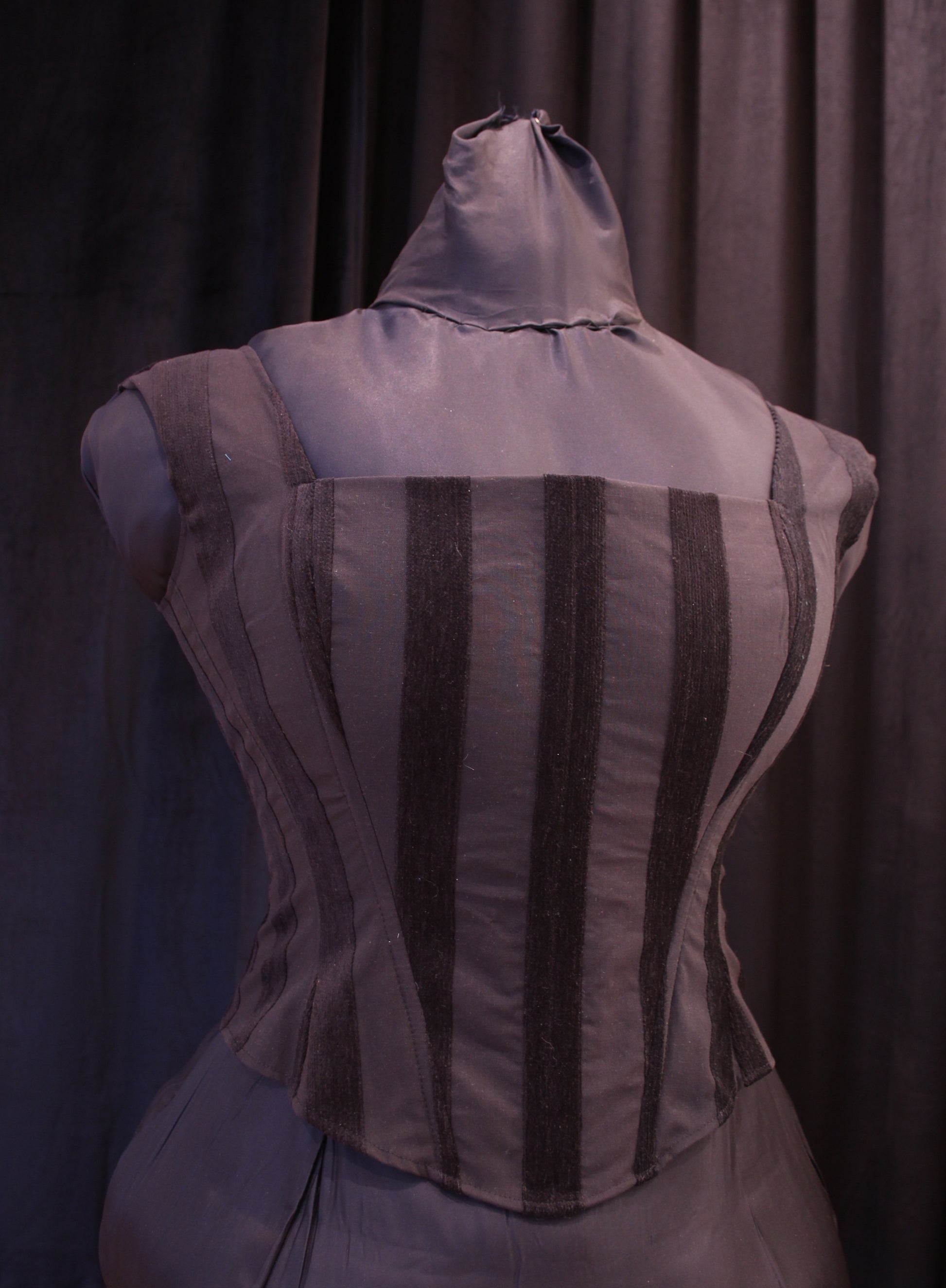 Kevyesti luutettu toppikorsetti samettiraidoilla. Hengittävä ja mukava kangas. Ei sovellu kiristämiseen, mutta antaa ryhtiä.