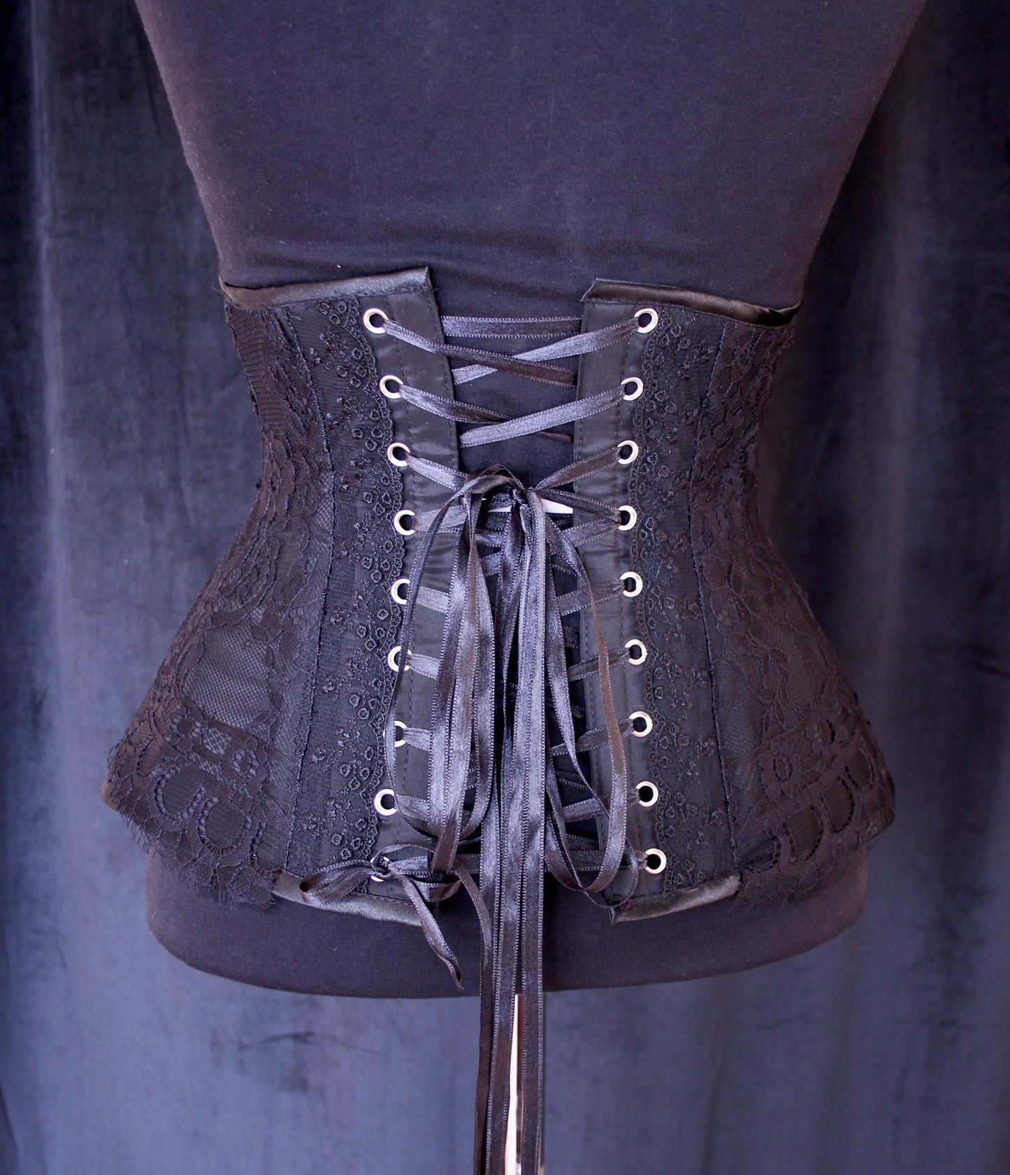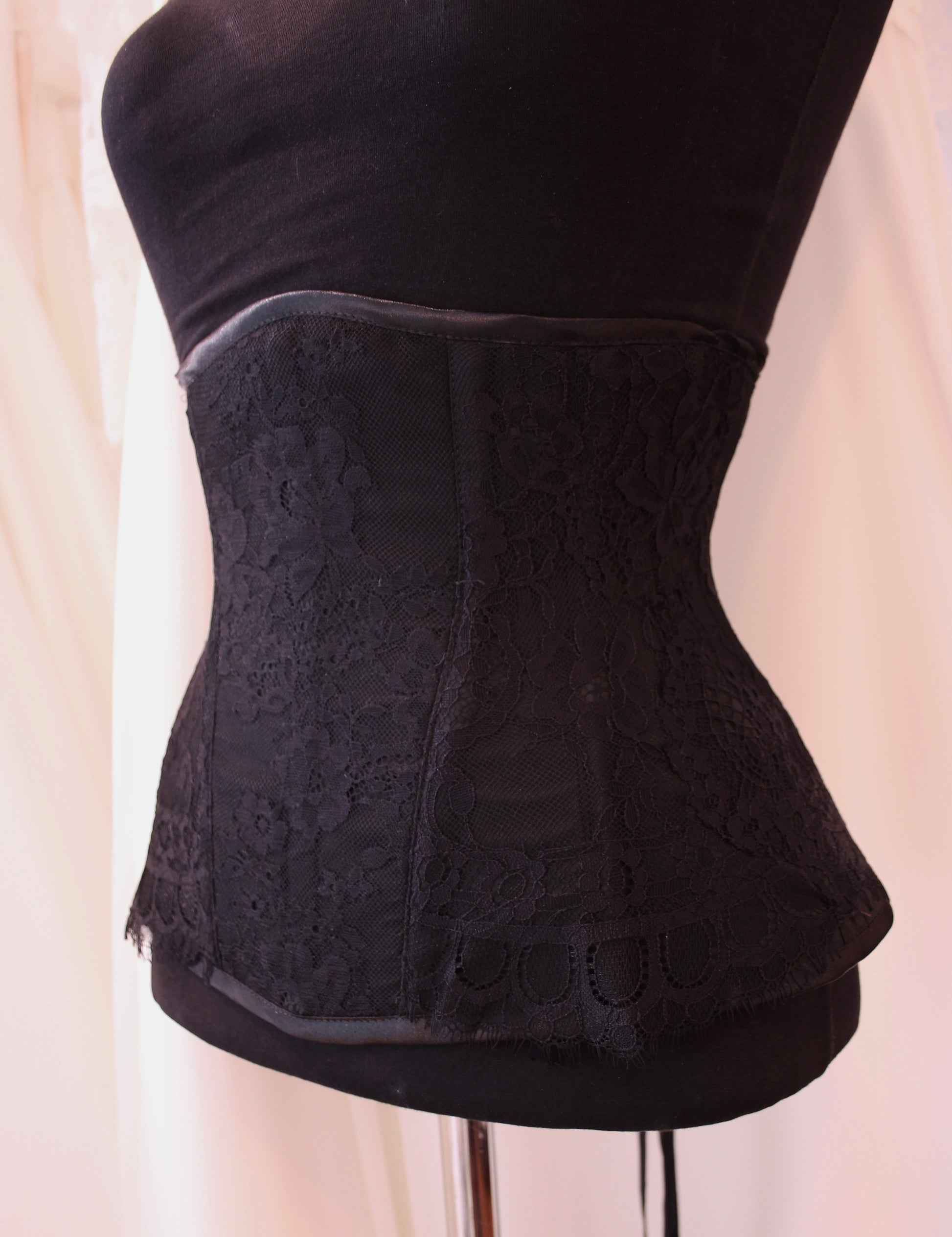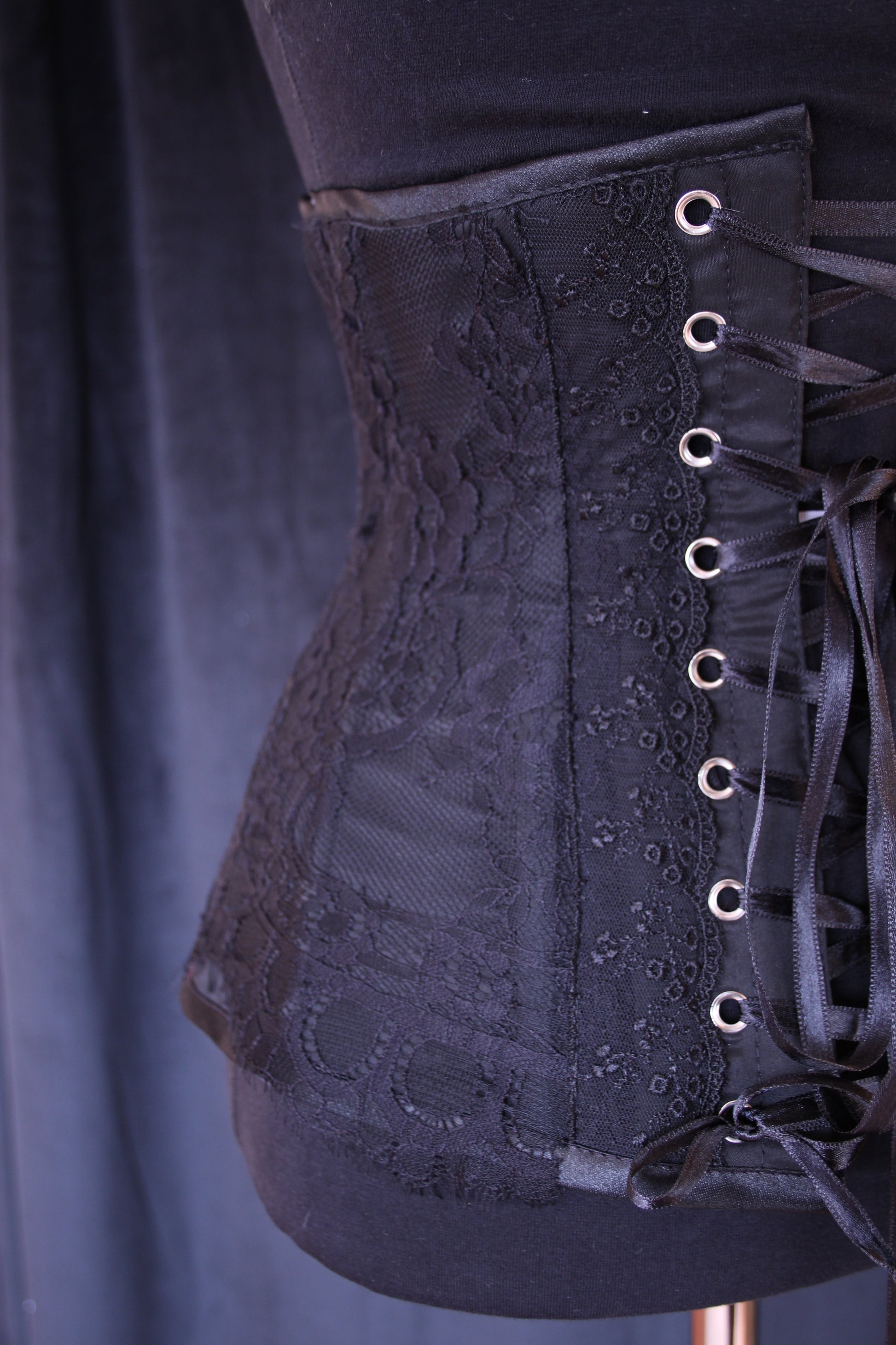 Ihana, musta pitsikorsetti moneen käyttöön. Sirra on hieman matalampi malli yläreunastaan, joten se ei paina rintoja istuttaessa. Vyötärö on muodokas.