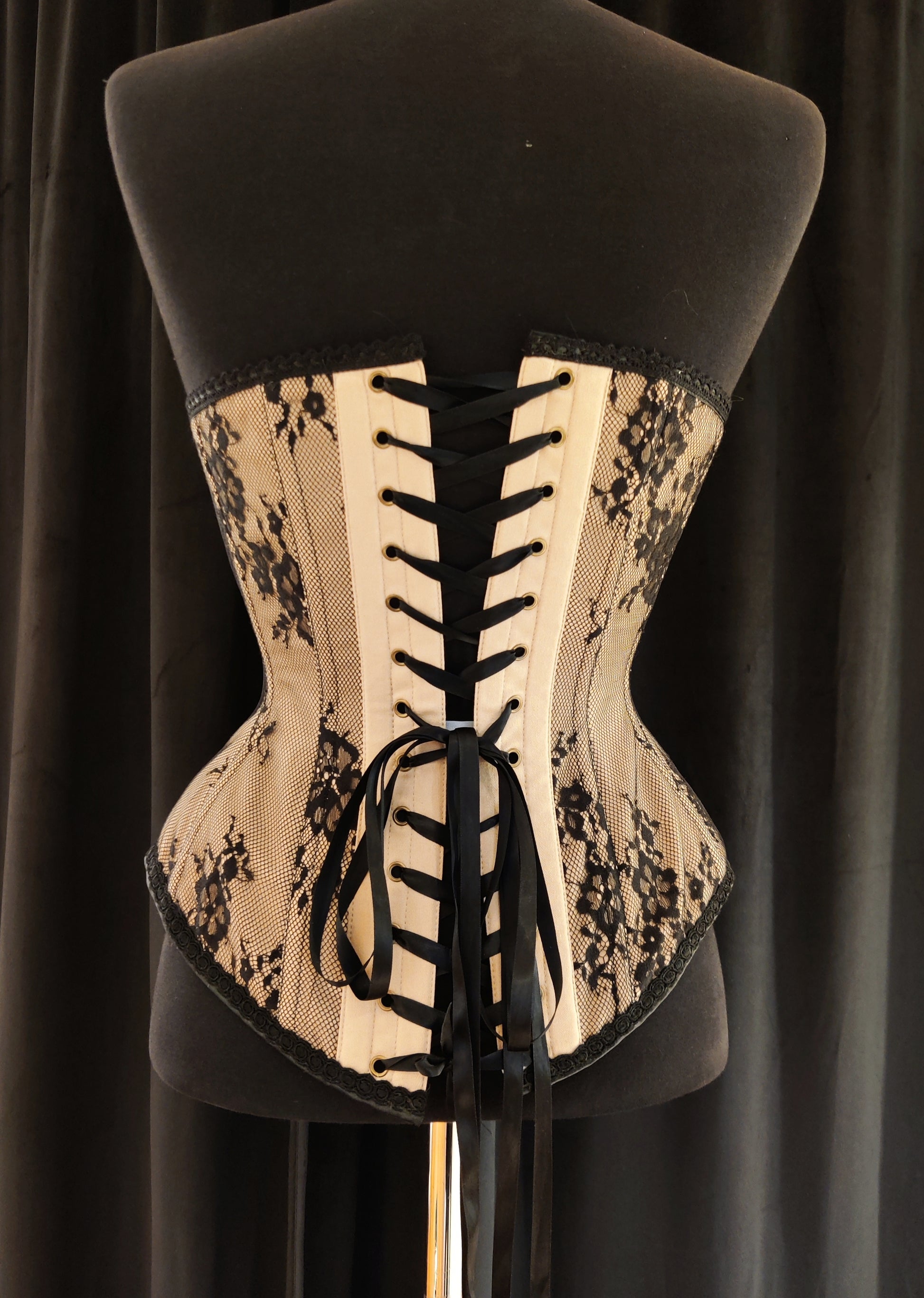 Upea, näyttävä ja hitusen seksikäs, tämä korsetti saa kenet tahansa tuntemaan olonsa upeaksi! Hento pitsi nuden pohjan päälle toimii aina. Materiaali on pitsiä puuvillacoutil pohjan päälle, joka tekee korsetista hengittävän ja todella mukavan. Luut ovat terässpiraalia ja syntteettistä valaanluuta, joten se halaa kurvejasi ihanasti. Edessä on säädettävä pieni nyöritys kivana yksityiskohtana.