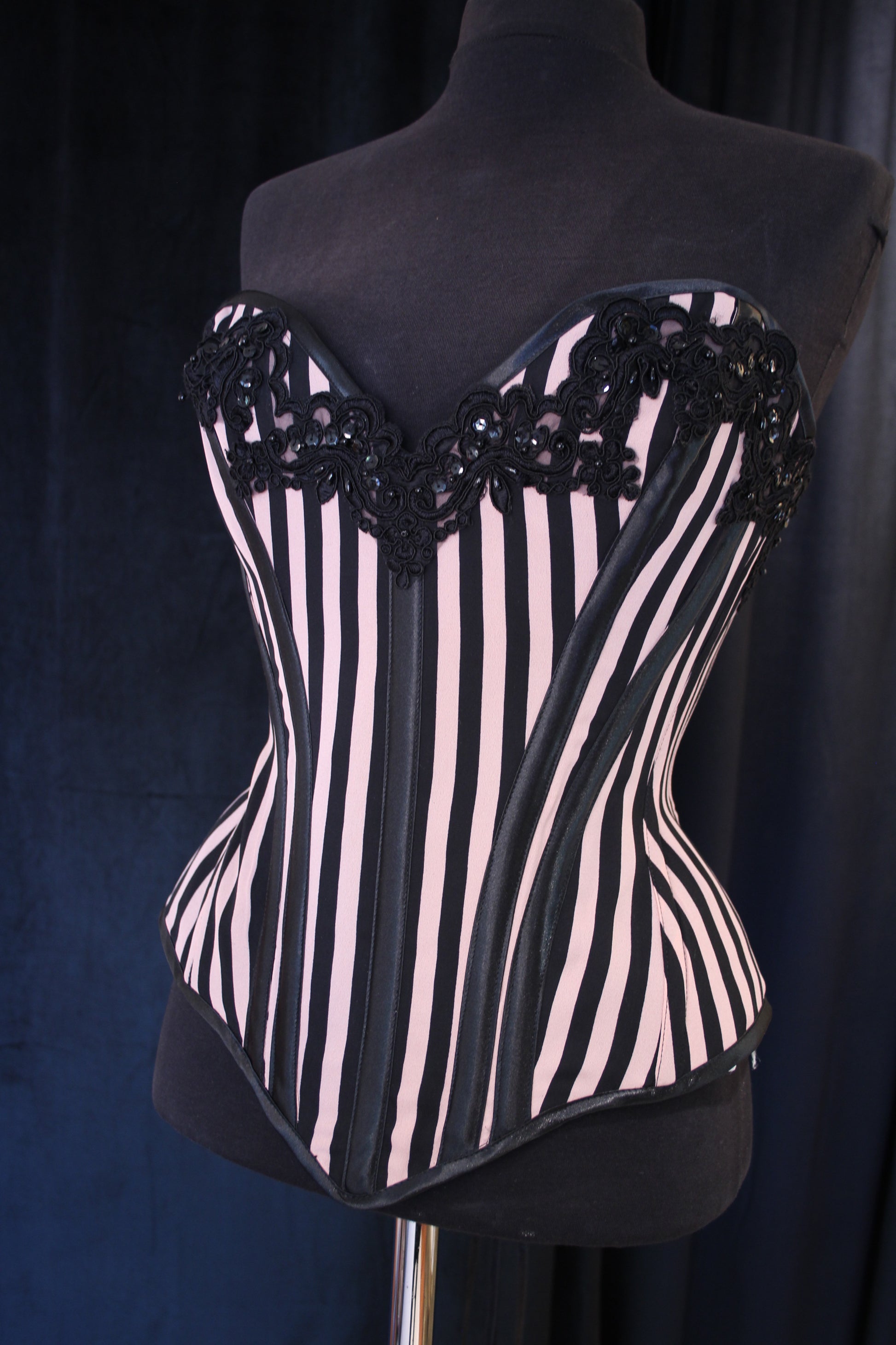 Vuoritettu puuvillafarkulla, joten se on kevyt mutta hengittävä. Luut ovat spiraalia ja synteettistä valaanluuta, joten korsetti on tukeva mutta joustava ja muokkautuu sinun omalle kehollesi.