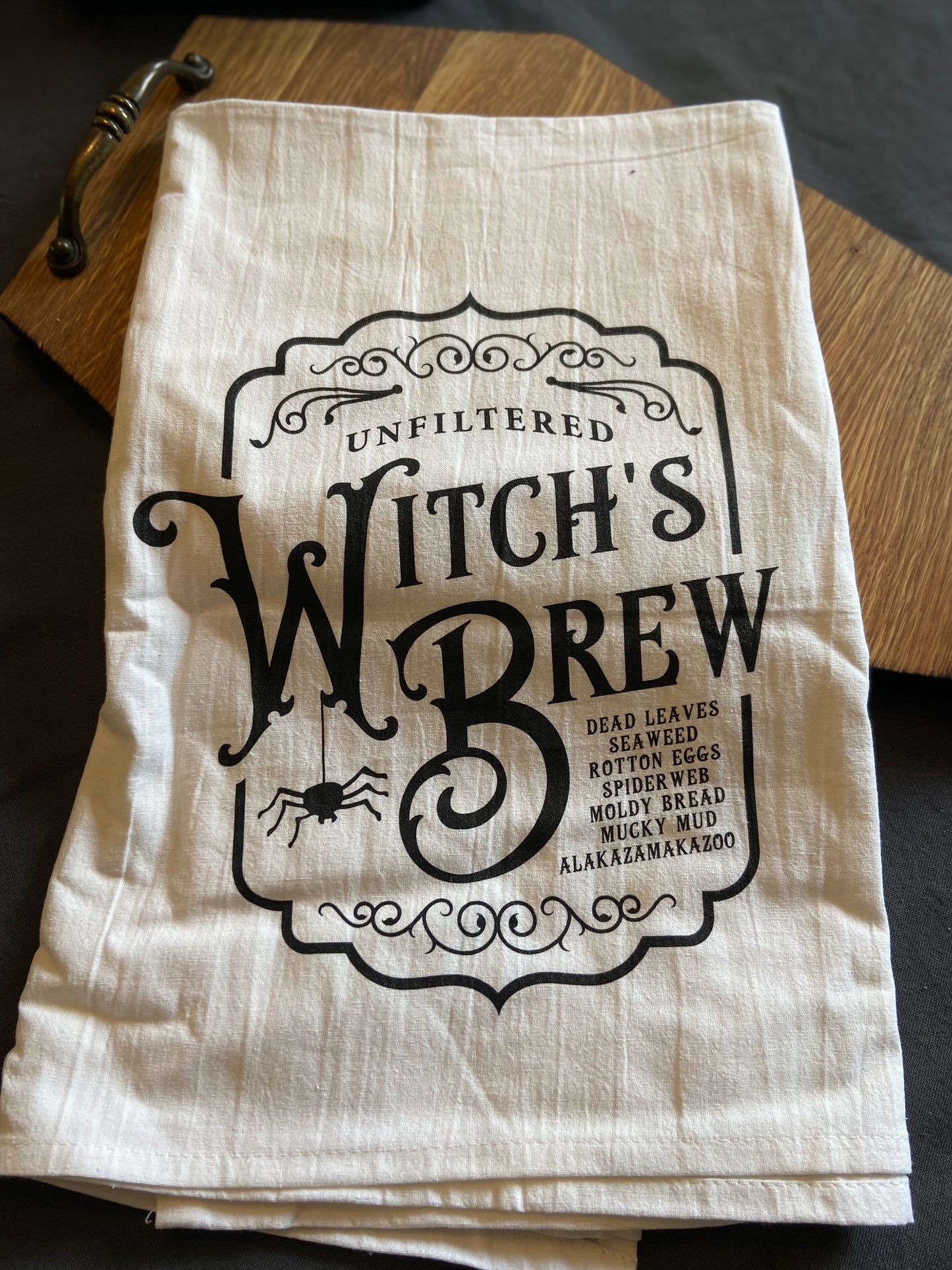 Puuvillainen astiapyyhe jokaiselle oman elämänsä noidalle. Koko 70x76 cm.